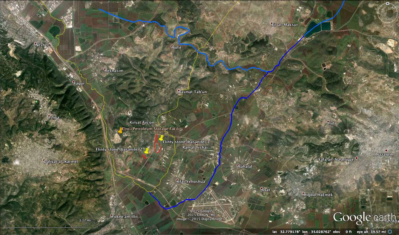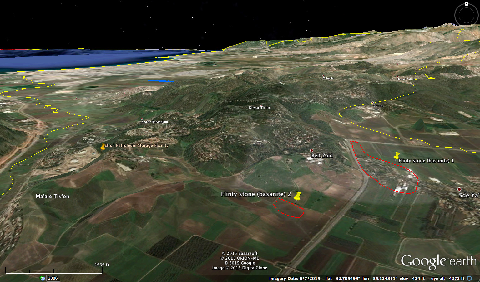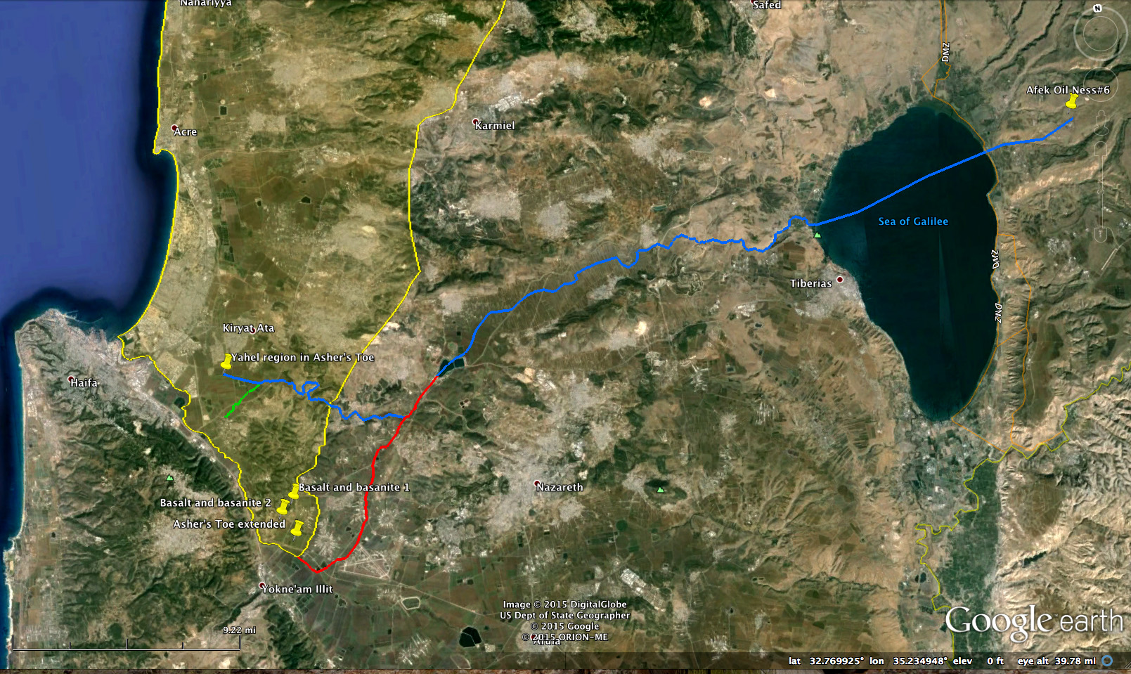 Fault path from Asher's 'toe' to Afek oil wells