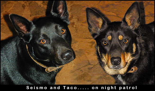 As Seismo began to fade in 2011 we found two Australian Kelpie pups to keep him company. He was not pleased at first but as the pups grew he tolerated them. Now they are our support team and we love them both but are especially fond of Jayzbo Baggins Deyo who is more loving and responsible than his mate, Isabella Margarita Deyo - whose intelligence gets her into trouble a lot.